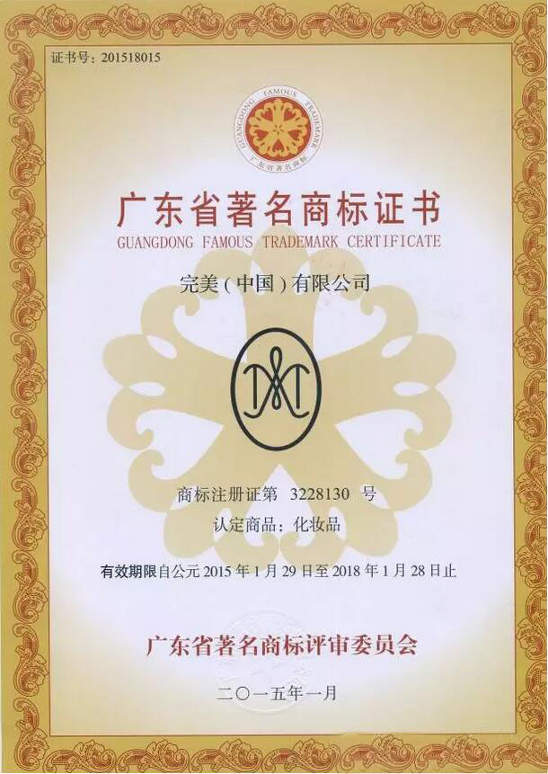在2015年3月,玛丽艳品牌成功取得广东省著名商标证书!