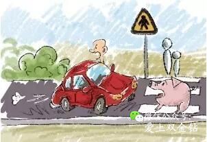 张三在山间小路开车,正当他悠哉欣赏美丽风景时,突然迎面开来的货车司机摇下窗户大喊一声:“猪!”张三越想越气,也摇下车窗大骂:“你才是猪!”刚骂完,他便迎头撞上一群过马路的猪。