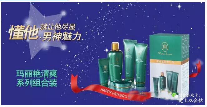 玛丽艳清爽系列,清爽、干净、利落的护肤产品,轻松打造100分清爽男神!这是咱爸这男神级别的最爱哟~