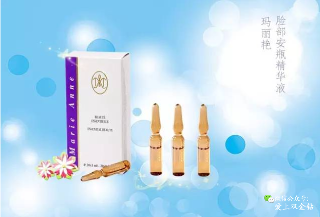 具有补水保湿功效的玛丽艳脸部安瓶精华液,对修护敏感、脱水皮肤特别有效。它能迅速为肌肤补充水分和养分,并持久保湿,令暗沉、干涩肌肤回复生机。还能镇定、美白肌肤,改善肌肤敏感程度,淡化皮肤色素。