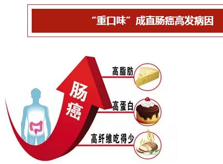 肠癌与饮食习惯密切相关。“二高一低”即高脂肪、高蛋白、低膳食纤维的饮食结构是诱发肠癌的主要因素,胃肠道在消化高脂肪类食物时,需要更多的胆汁,多余的胆汁被肠道细菌分解后,产生有致癌作用的‘二级胆酸’,这种致癌物常年作用于肠黏膜,容易使肠黏膜发生癌变。