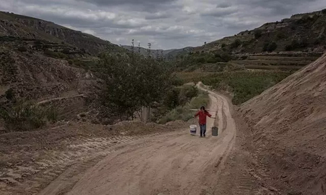 干旱天气,村里的妇女需要翻山越岭辛苦取水
