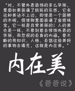 这是关于自尊、自爱、自信、自强、自信、自律、信任、价值、爱国、礼貌、知识、内在美,最接地气的理解。