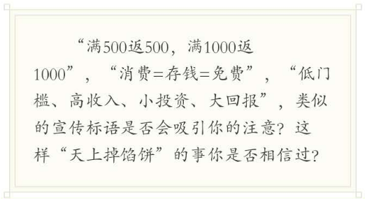 据风控专家介绍,商品返利超过正常范围(≥50%)且有明显的二级、三级分销性质的,“平台投资”年化收益过高(正常≤12%)且出现二级、三级“代理抽佣”现象的,基本可以认定就是庞氏骗局。对于普通消费者来说,如果抱着投机心理,想要成为金字塔上层致富,还不如去买彩票,坚持下去说不定凭借“人品爆发”还能中大奖,而返利商城则注定是一场镜花水月的虚幻之梦,当梦醒时分,失去的不光是金钱、时间,可能还有亲情和友谊。