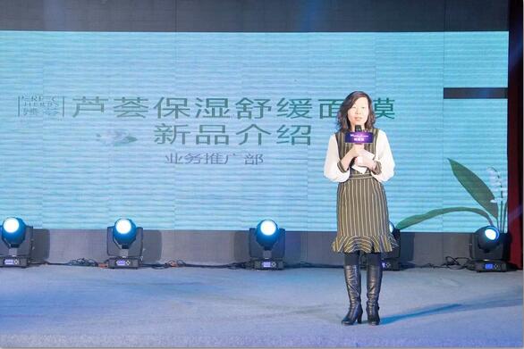 分公司美容培训讲师温利寰为大家讲解介绍即将上市新品——臻荟芦荟保湿舒缓面膜,完美公司自主研发的全新美容护肤品品牌,相信它的到来会推动美容市场销售的新高潮。 现场体现新产品芦荟面膜