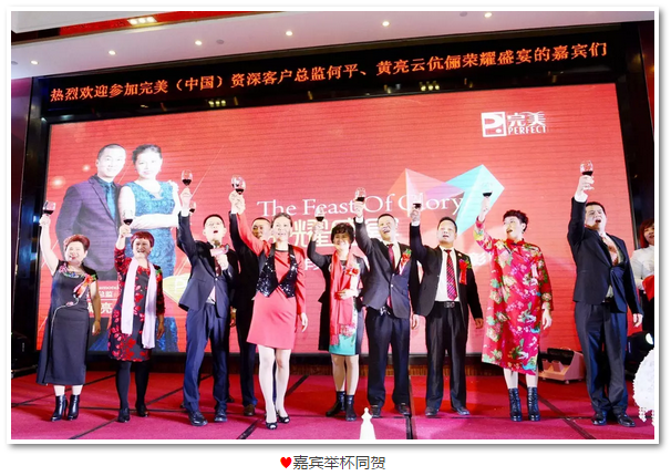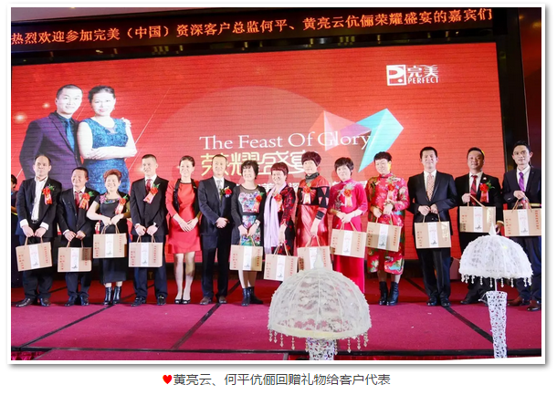 黄亮波高级客户总监分享了自己当初因不了解完美而抵触,到最后了解完美并与姐姐黄亮云资深客户总监一起踏上完美之路的点点滴滴。在最无助的人生路上,感谢亲情给了自己最持久的动力,感谢完美的平台给了自己实现梦想的机会,选择完美,无怨无悔。 郭惠龙高级客户总监感谢恩师黄亮云、何平伉俪一路的苦心栽培及完美公司提供的坚强支持,在今后的完美路上定将加倍努力,以更优秀的表现答谢恩师及公司。 蒋悦妹高级客户总监希望客户像恩师黄亮云、何平伉俪一样,一步一脚印地踏实经营完美,使完美事业健康茁壮成长,不辜负恩师及公司的用心教导。 杨莉瑜资深客户总监对黄亮云、何平伉俪送上真诚的祝福,希望在场的完美客户可以通过黄亮云、何平伉俪的盛宴找到成功的规律,在不久的将来举办属于自己的荣耀盛宴,成就自己的完美人生。 资深客户总监莉瑜,高级客户总监刘伟民、苏卓少、林进眼、黄亮波、郭惠龙、杨壮群、陈奕君、蒋悦妹、黄兰卿、黄燕君和黄少武对黄亮云、何平伉俪取得的成绩感到自豪和骄傲,鼓励现场的客户坚持自己的梦想,只要有决心,肯努力,目标就一定会达成。