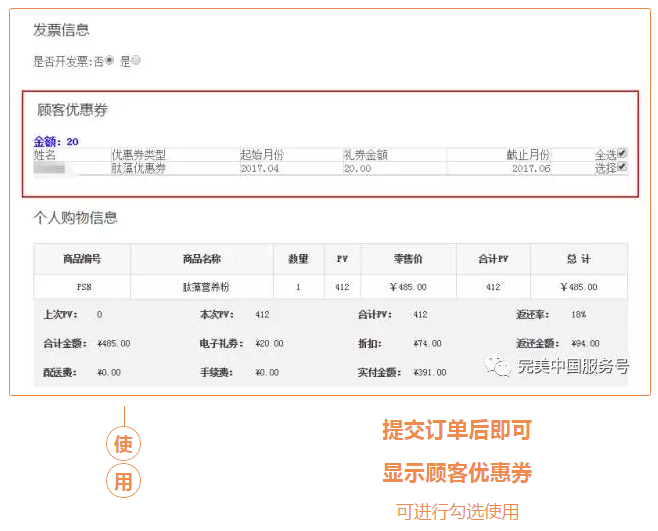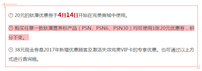 4月14日开始,您的20元肽藻购物优惠券就可以在完美商城查询并使用了!