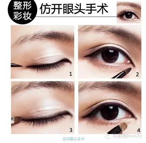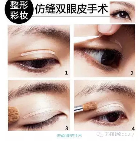 彩妆技巧:双眼皮贴纸将原本内双的眼皮往上撑大,变成明显的双眼皮,并利用打亮眼皮和加深眼窝的方式,让双眼皮看起来更自然深邃。