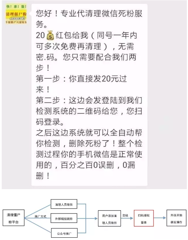 而且,这些僵尸粉工具外挂在进行消息发布时,会不断骚扰你的所有好友,并在发布测试删除消息时也用链接或者微信号的形式来做自我推广,将会使更多人上当。