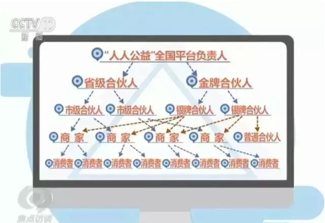 对此,央视财经报道称,“人人公益”平台设计了多个合伙人级别,上级可以从下级提成,一层一层剥削,形成清晰的传销架构。除此之外,“人人公益”平台的高额返利模式就是用后加入人的投资来返利给先加入的。但是,以这种模式运营无论如何都没有办法让所有投资者如约获得全部返利,最终导致资金链陷入断裂,这其实就是庞氏骗局。