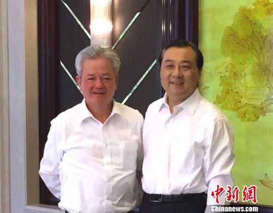 图为扬州市委书记谢正义(右一)在会见古润金时,高度肯定了完美公司对扬州经济发展做出的贡献。 王爱萍 摄