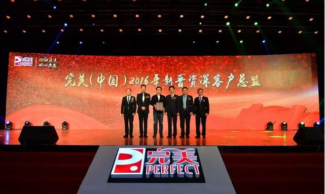 2016年客户们面临转型和调整,保持稳健发展的客户是我们骄傲。而在2016年度新晋成为完美(中国)资深客户总监的两位湖南指导更是大家的榜样!完美湖南分公司总经理陈涛先生及湖南地区顾问们共同上台分别为他们颁发奖牌,全场观众也为他们响起了最为热烈的掌声。