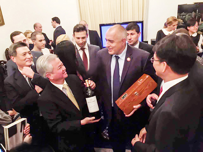 11月24-25日,保加利亚总理鲍里索夫到中国参加第四次“中国—中东欧国家领导人会晤”。25日晚,保加利亚驻华大使馆在北京举行总理招待晚宴,完美公司古润金董事长、胡瑞连总裁应邀出席晚宴,并受到鲍里索夫总理的亲切会见。同时,完美斯托扬诺夫佳酿红葡萄酒荣幸成为招待晚宴专用酒。