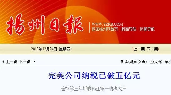 当前,国内经济面临下行压力,而扬州完美日用品有限公司产销依旧稳定增长。到2014年,该公司已连续第三年成为邗江区第一纳税企业,连年包揽扬州高新区各个重大经济奖项。截至2015年11月30日,扬州完美纳税已经突破5亿元,较去年有明显增长。
