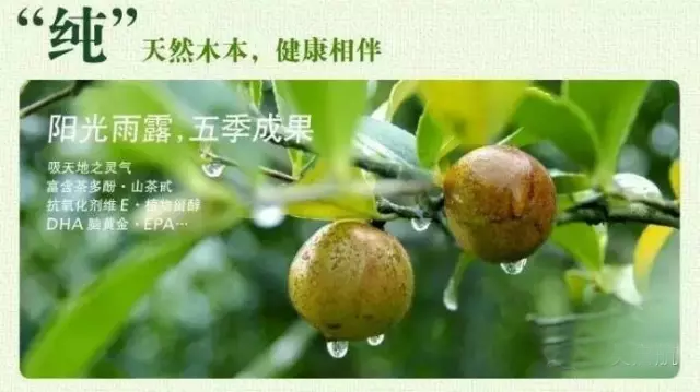 绿色:新鲜饱满天然山茶籽,物理压榨绿色工艺。保留原料、原汁、原味,色、香、味俱全。