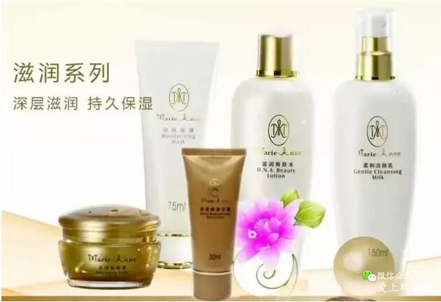16、DNA滋润爽肤水:当面膜做完后,再做水疗补水。(3份的纯净水+1份的DNA滋润水,放入面膜小碗里,脸部用化妆棉打湿,把蘸湿的化妆面铺在脸上,用面膜刷补水,20分钟即可。效果非常保湿,非常嫩白);