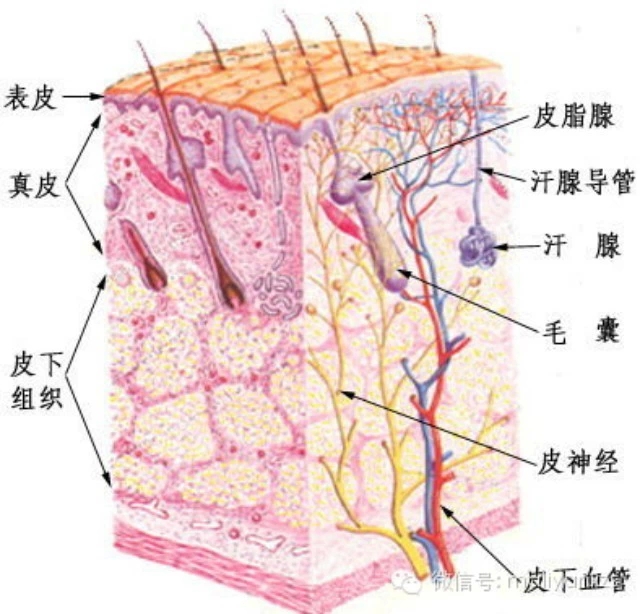 因为皮肤分为表皮层(表皮层又细分为5层)和真皮层!