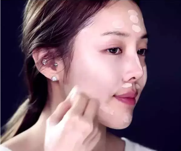 给肌肤补完水之后,可用深色的粉底霜进行遮瑕,然后把粉底液涂在脸上,再涂抹均匀。