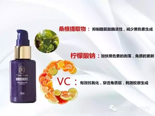 玛丽艳美白精华露,三重美白,美白不只停留在肌肤表面。