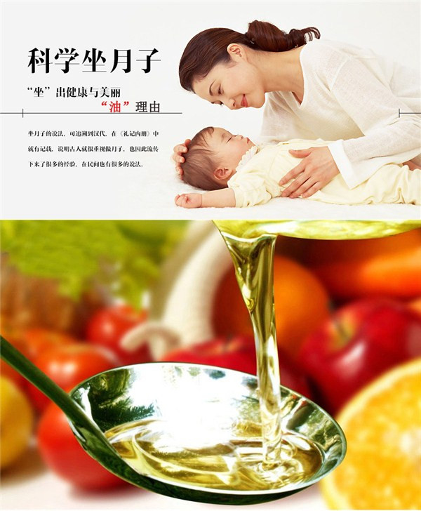 1.油茶籽油:东方橄榄油,俗称为“月子油”或“育子油”。茶油,是从木本油料植物–油茶树的果实提取而成。油茶树是我国的珍稀资源,盛果期需6-8年,从开花到成熟要历经秋、冬、春、夏、秋五季之雨露,饱含日月精华集天地灵气于一身。成熟于次年花开时节,花果同株并茂,民间有“抱子怀胎”之佳称,堪称人间奇果。
