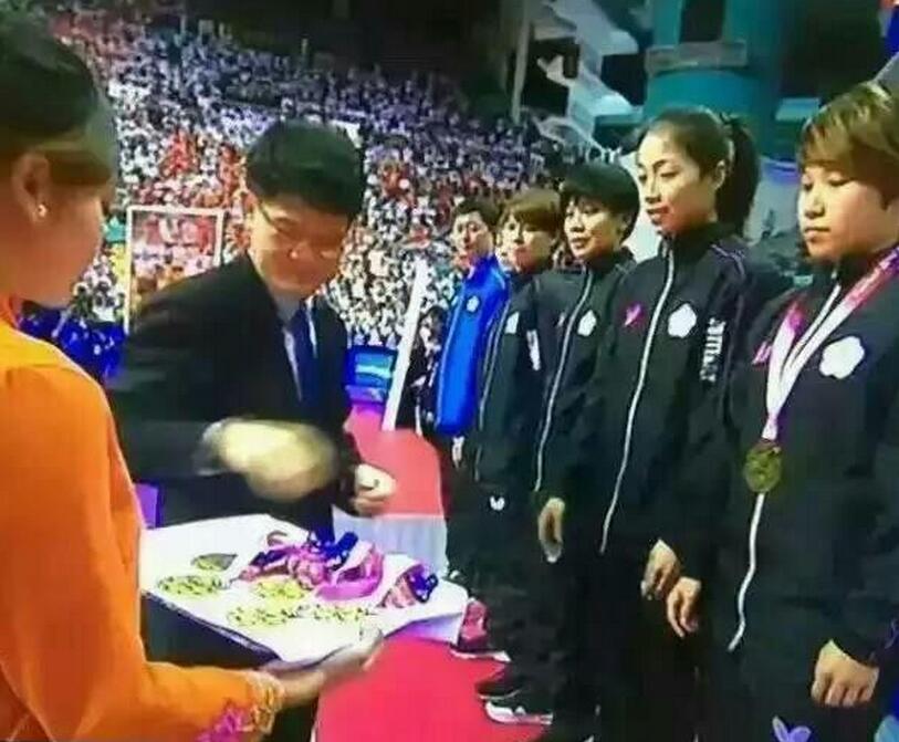 古润金董事长为女团姑娘颁奖,奖牌上刻着“完美”