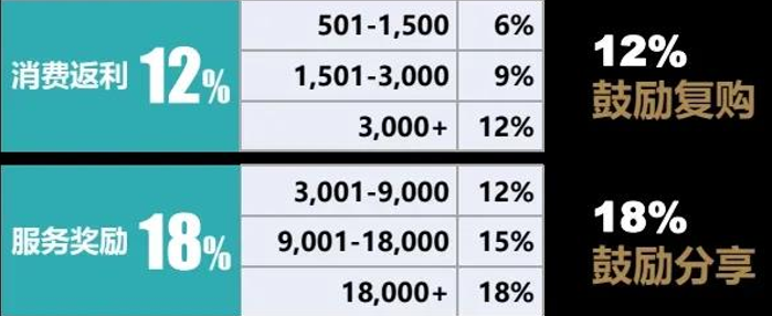 (1)你和你所有顾客当月的实际积分的奖金是20%-26%与所有顾客享受的优惠所产生的百分比之差乘以顾客当月的实际消费积分,所得的数字就是你当月的奖金。