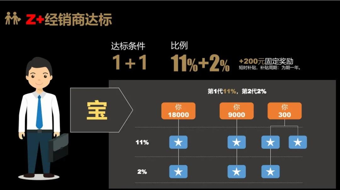 1、条件:个人卡消费300PV+培养1个合格直销员+个人小组9000PV-18000PV。