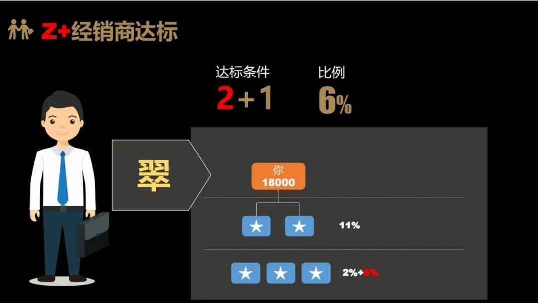 1、条件:个人卡消费300PV+培养横排2个合格直销员+个人小组18000PV。