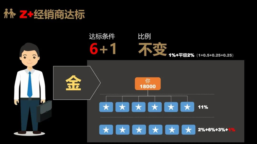 1、条件:个人卡消费300PV+培养横排6个直销员+个人小组18000PV。